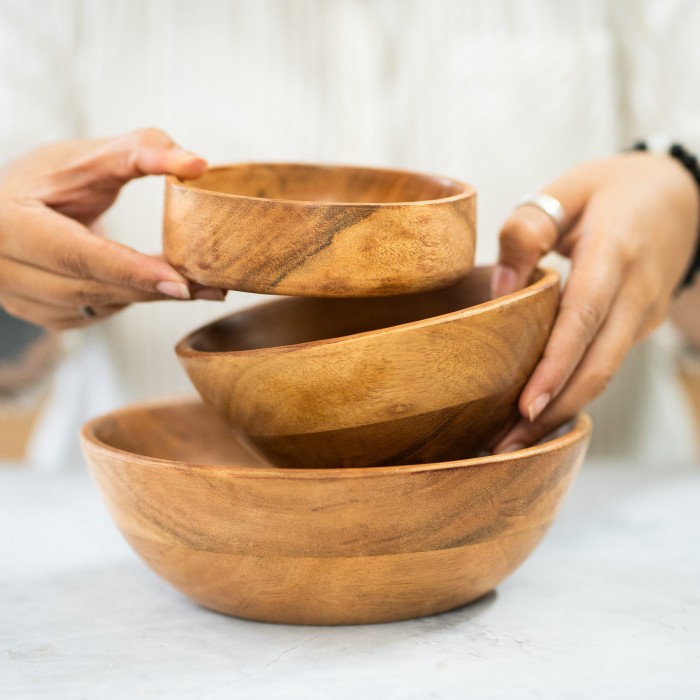 Each bowl is handcrafted by skilled artisans using recycled wood, ensuring that no two pieces are exactly alike. Variations in wood grain, texture, and colour may occur depending on availability. These natural differences are a hallmark of handcrafted wooden products and are celebrated as the authentic beauty of wood—not defects.