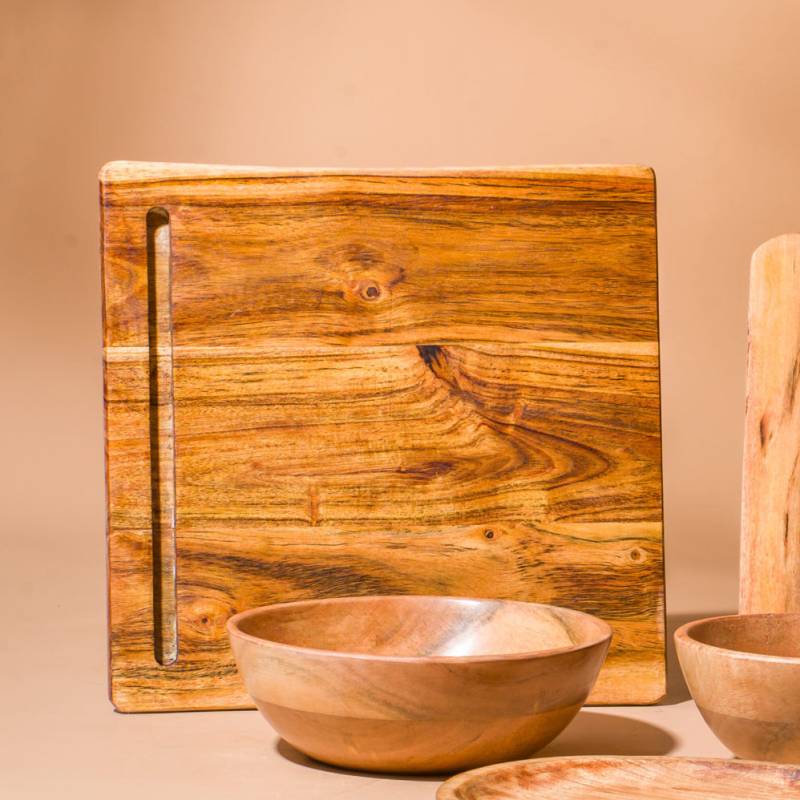 Shop these handcrafted square wooden platters from the Noodle Studio Serveware Collection, designed to bring together functionality, style, and sustainability. Perfect for serving snacks, appetisers, desserts, fruits, and main-course accompaniments, these wooden square platters are ideal for both everyday dining and special occasions.